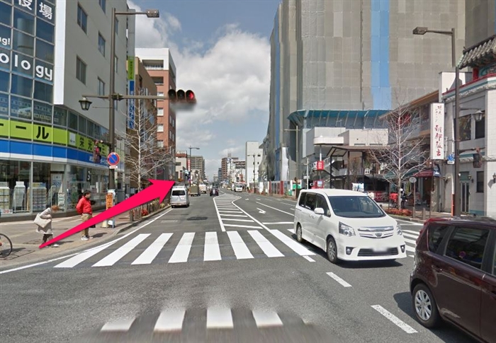 ファミリーマートを右手に信号まで直進して、